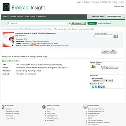 Nectar Case Study: Making Loyalty Pay SITUATION ANALYSIS Sainsbury’s CRM might not be as strong as if they had their own Competitive landscape: Nectar faces tough competition, one of them being Tesco, who has their own loyalty program and 26% market share Mark & Spencer ... Visit Document